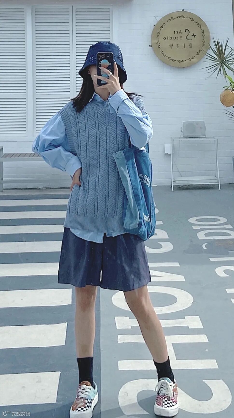 随便拿一件马甲进行叠穿,搭配的层次立马就有了,时髦度up up up~