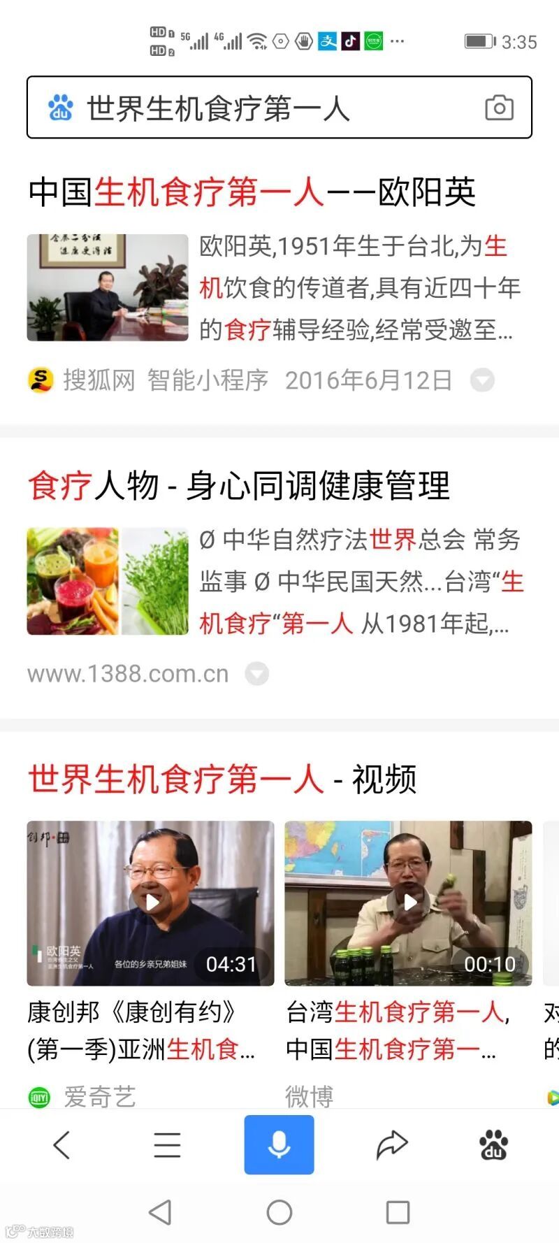 从百度搜索“ 亚洲生机食疗第一人 ”