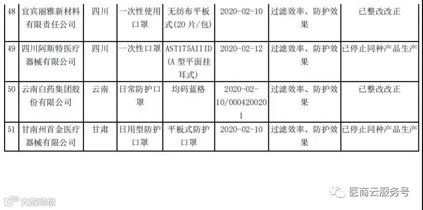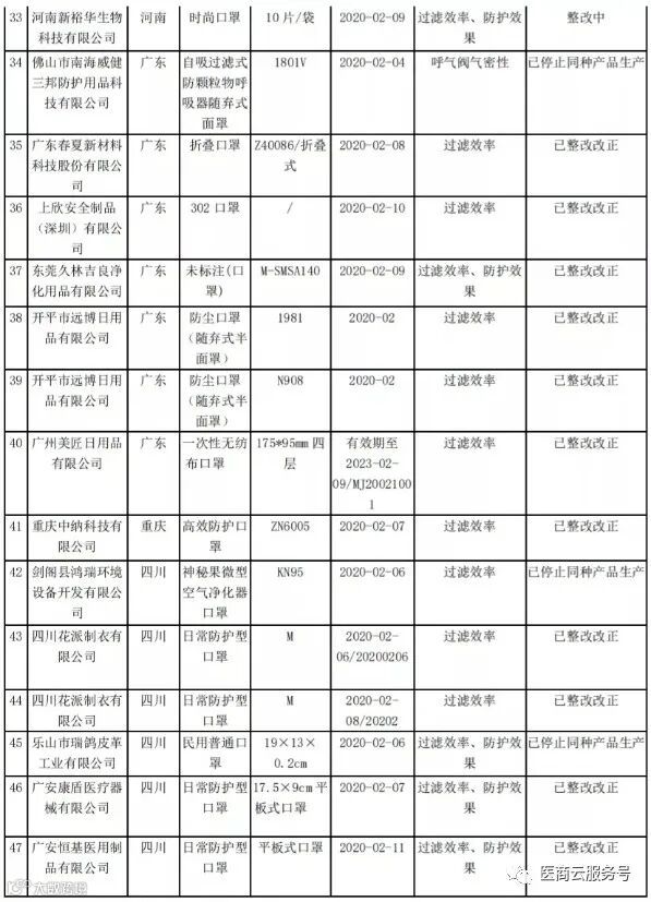 4月27日,市场监管总局发布《非医用口罩质量监督抽查不合格批次名单》表示,今年2月以来,市场监管总局组织开展了非医用口罩产品质量监督专项抽查,共检出47家企业的51批次不合格产品。