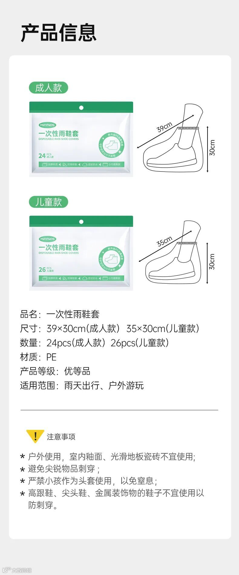 成人款1袋24只,儿童款1袋26只,快给全家安排上,雨天再也不怕湿鞋!