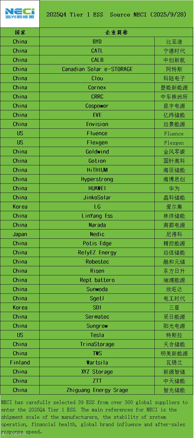 2025Q4 Tier 1 ESS  Source NECI 追光新能源