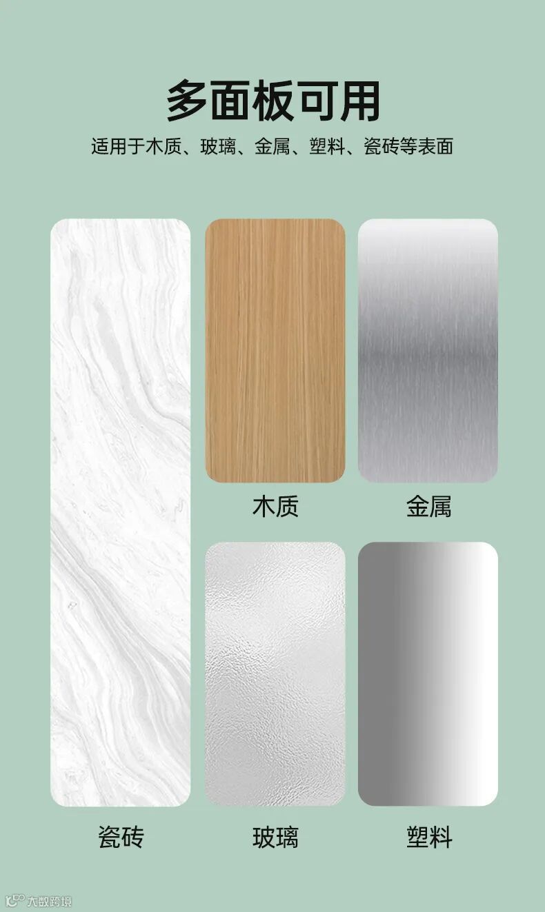 无论你是在墙壁上、桌面上使用,它都能牢固地贴在表面上,不会松动或掉落