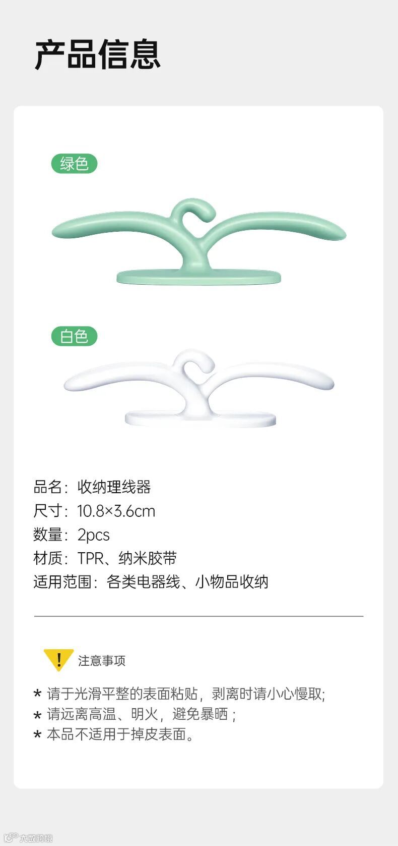 理线器的弧形贴面具有强大的贴合力,能够完美贴合各类电器表面