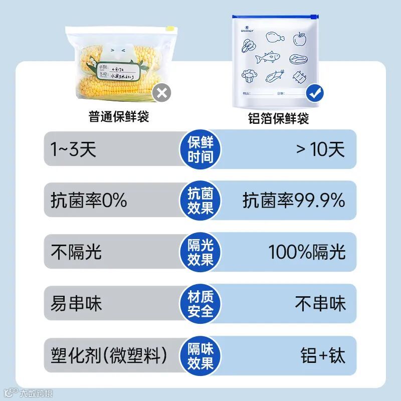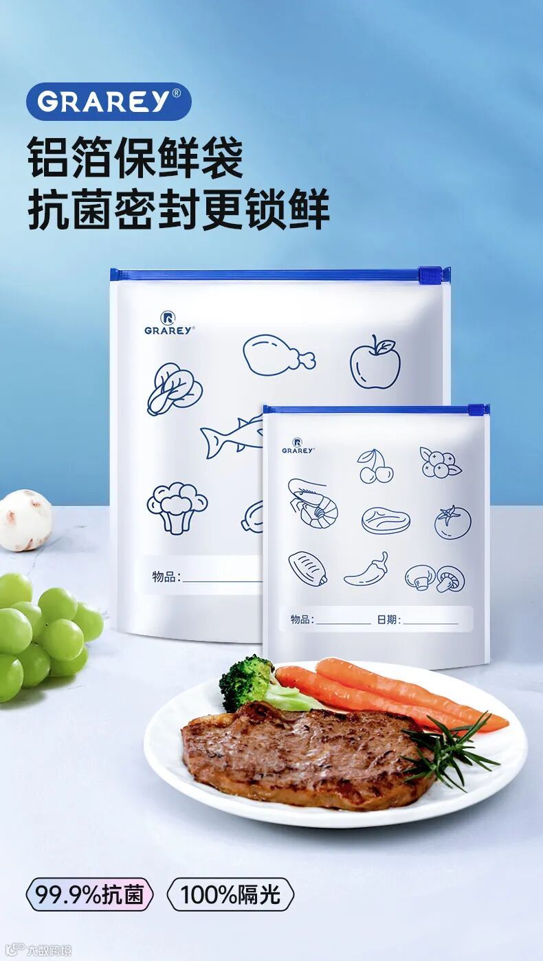 所以,想要减少不必要的浪费,还能满足各种食物保鲜要求!就得入手这款Grarey 格瑞亚|铝箔保鲜袋!