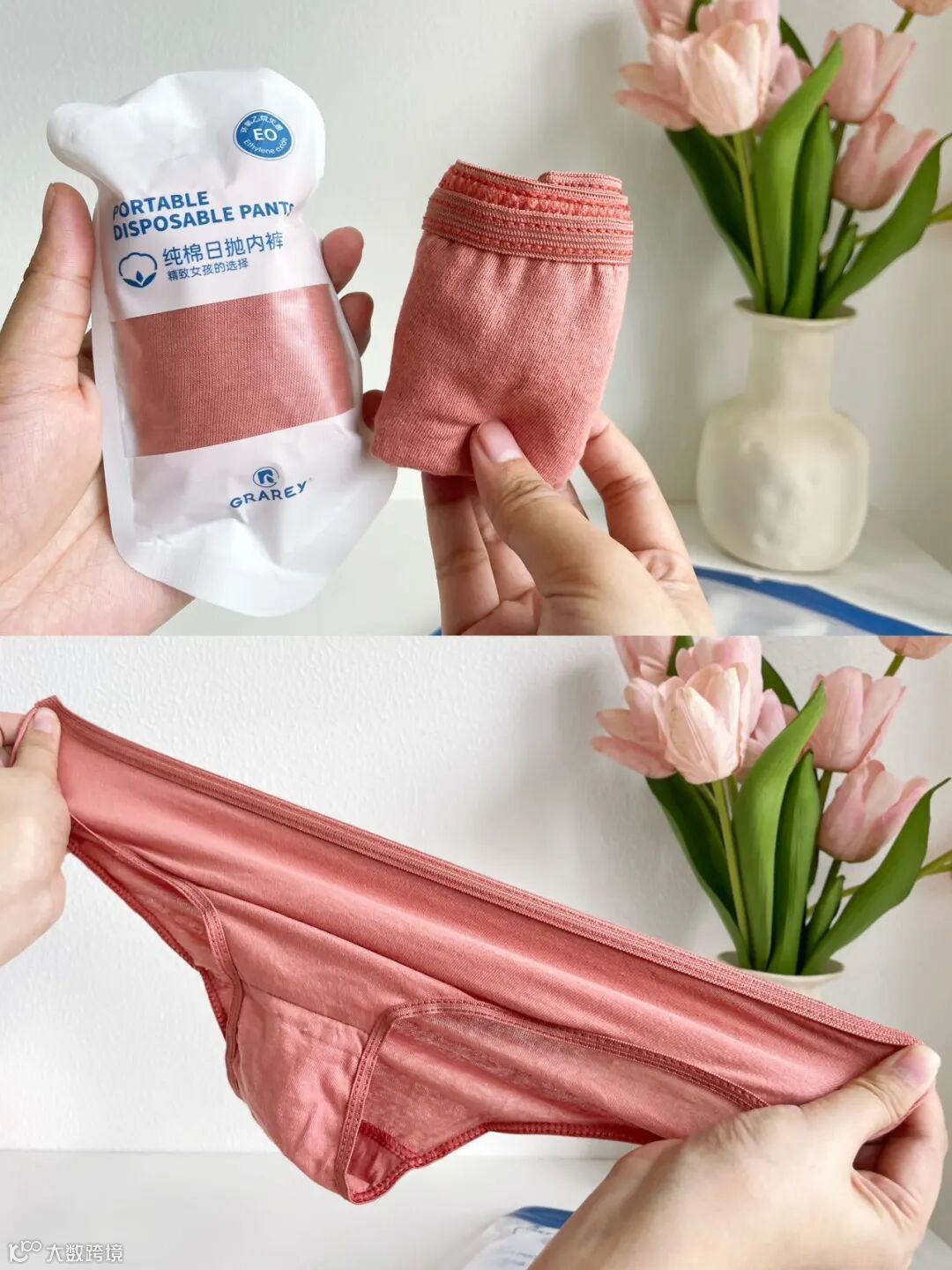 像GRAREY纯棉日抛内裤经过灭菌处理且达到安全性检测标准的!不用洗就能直接穿,穿起来和平时的内裤感觉不出差别,软软的,轻薄又透气~