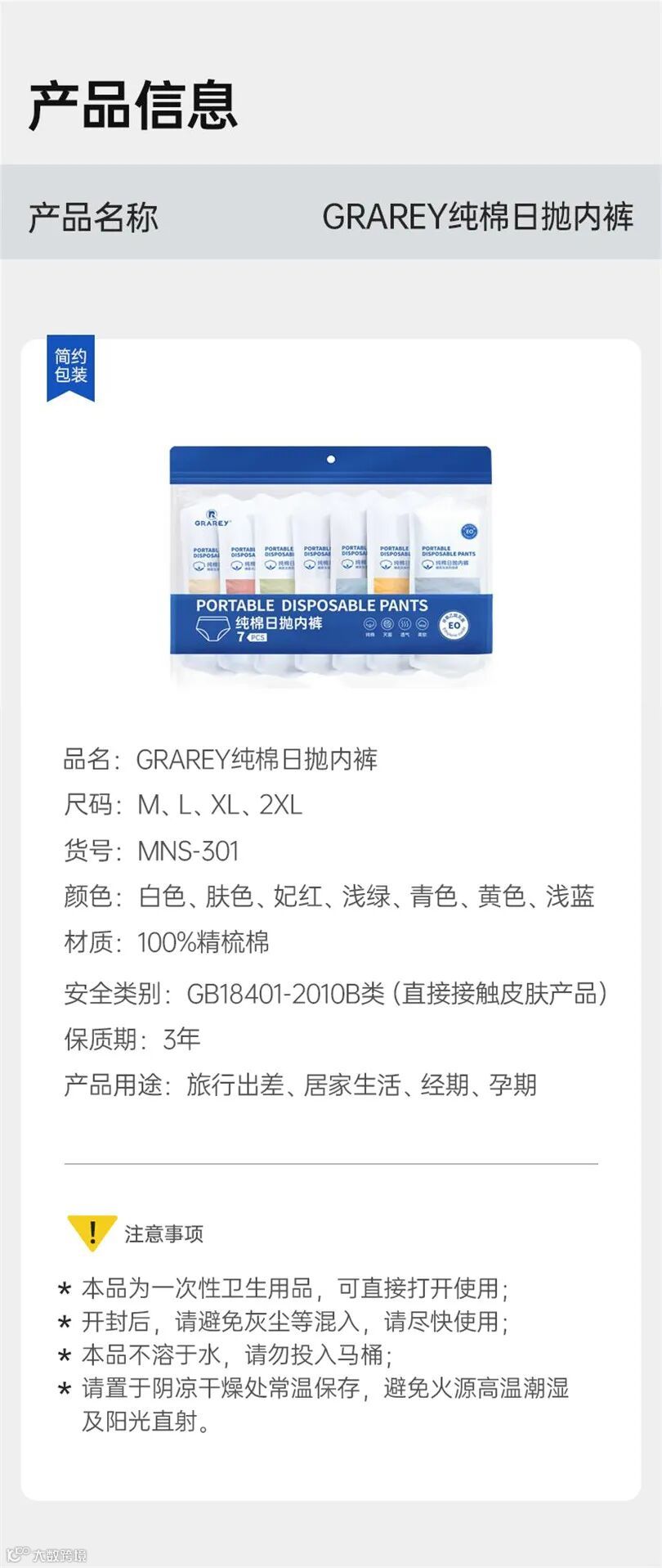 所以,「Grarey(格瑞亚)一次性内裤」真是大家的救星!拆开就能穿,一天一扔,懒人必备!安全、便捷、避免尴尬!