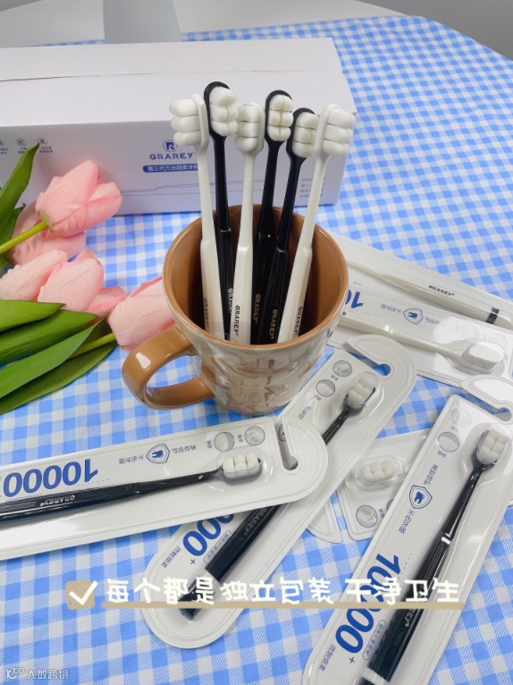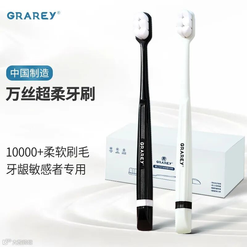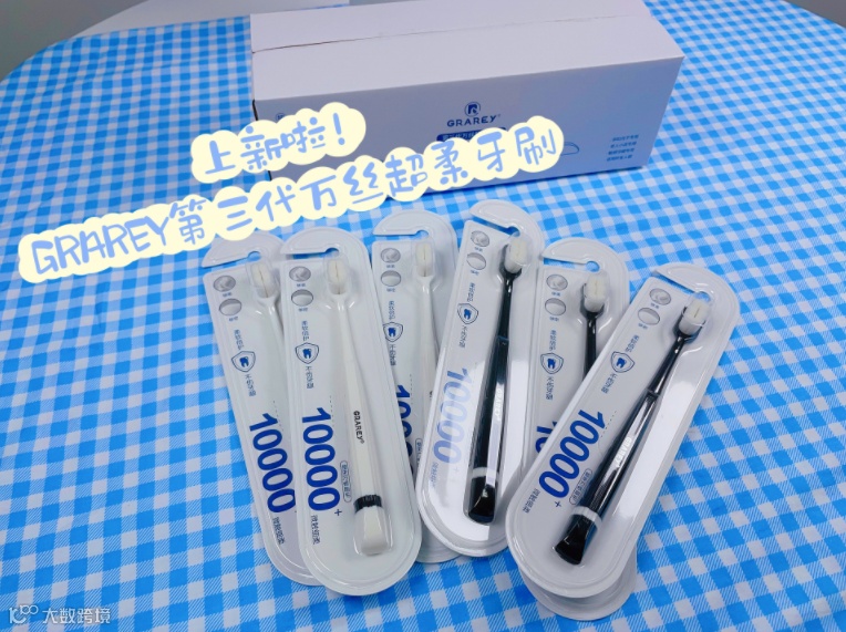 它要拥有“10000+根刷毛,超级柔软,清洁彻底”孕妇、小孩、老人、牙龈敏感者专用的GRAREY 第三代万丝超柔牙刷!