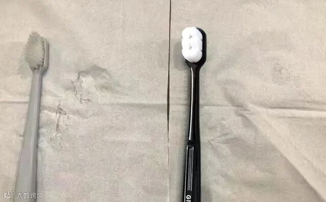 (左:普通牙刷 右:第三代万丝超柔牙刷)
