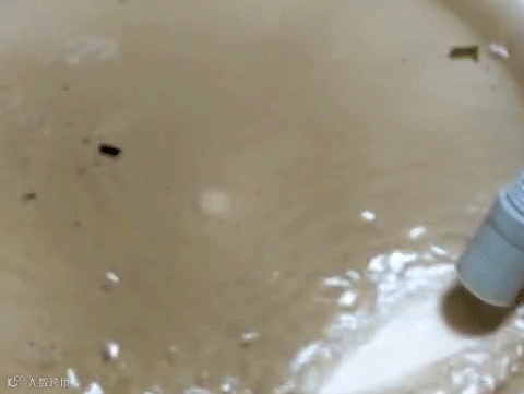 30分钟程序结束后,脏污随着废水哗哗溜走。