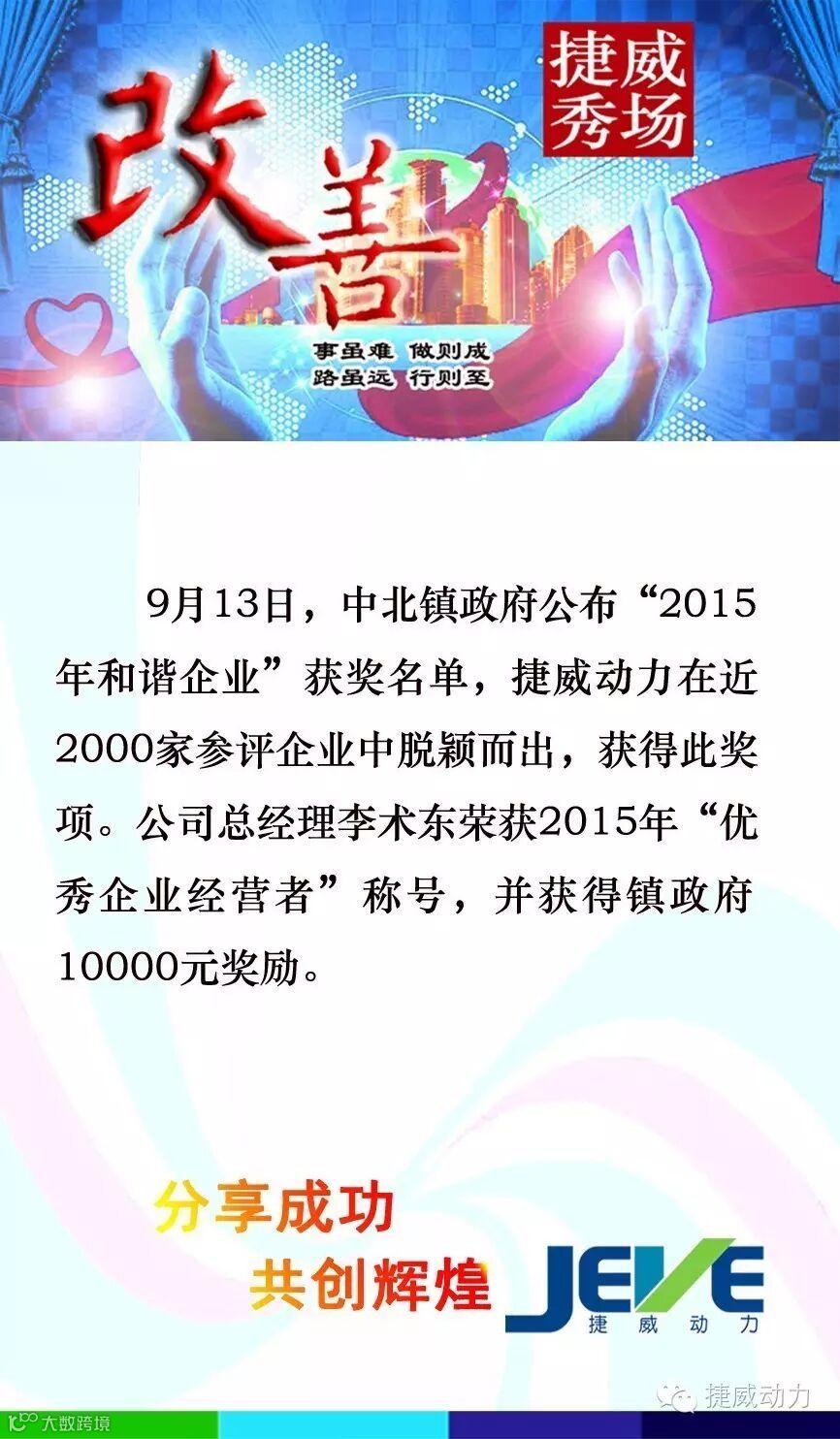 【捷威秀场】捷威动力荣获“和谐企业”奖