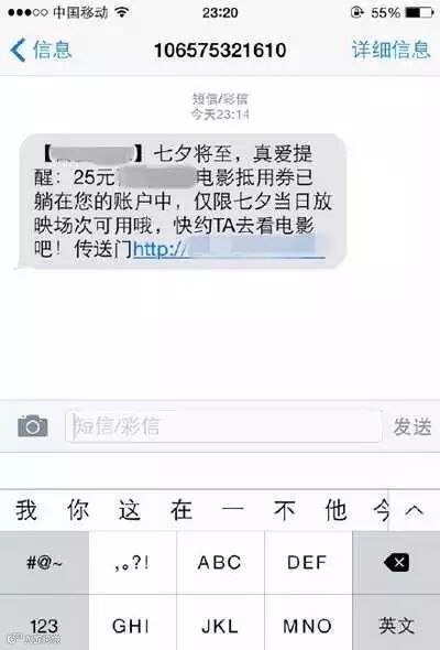 怒关微信,有手机短信进来,原来是促销...不,虐狗的