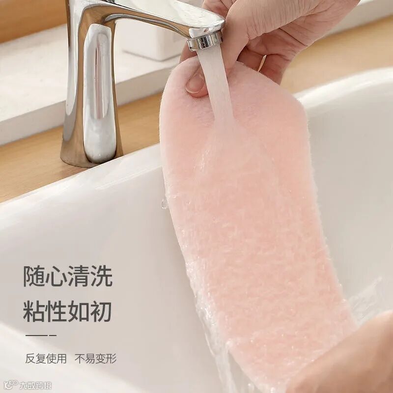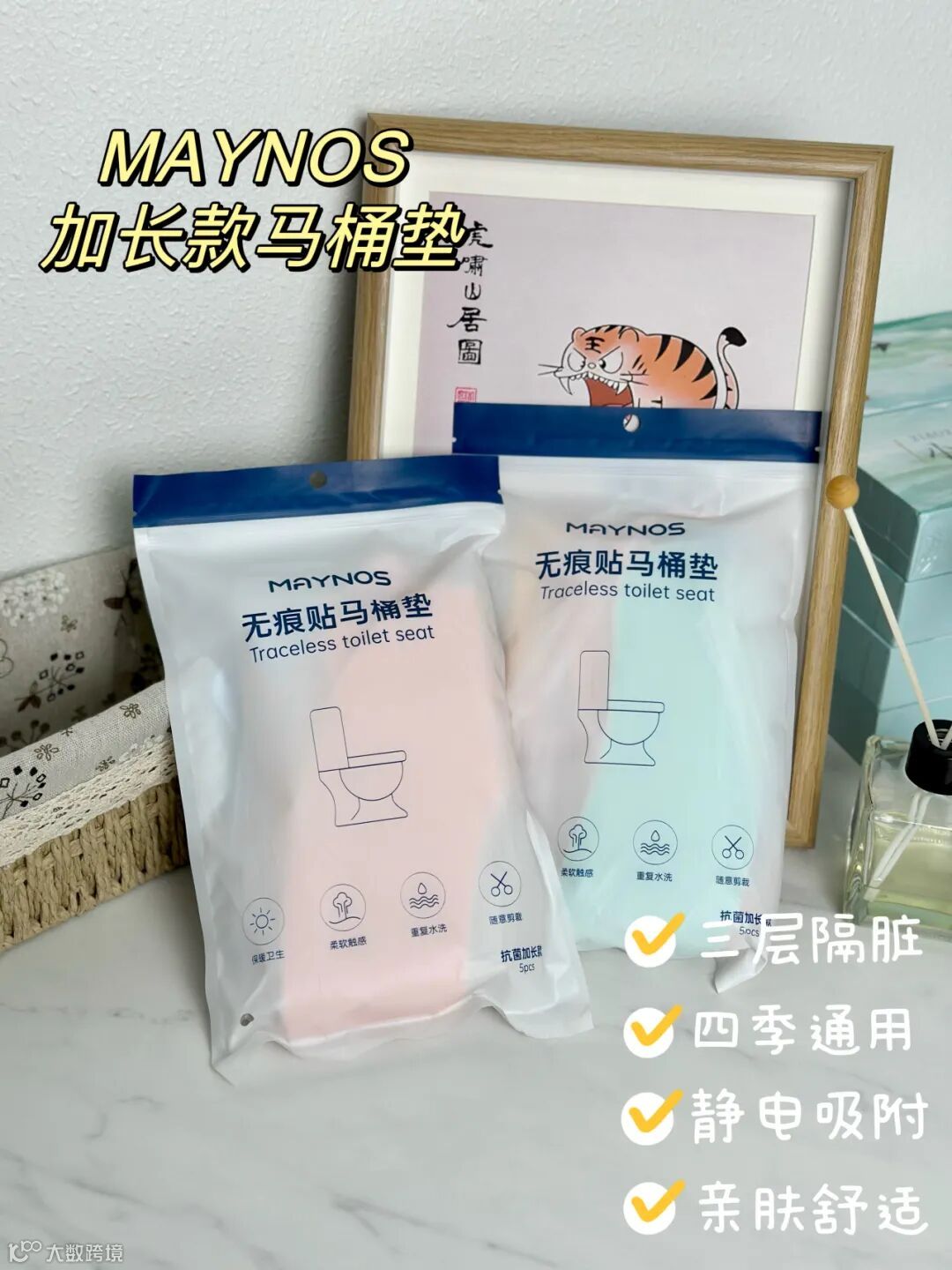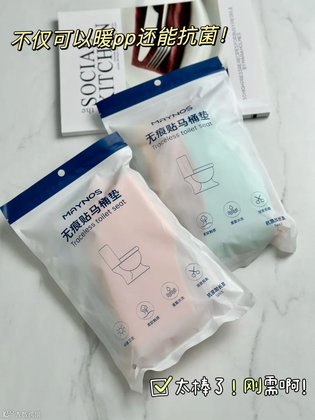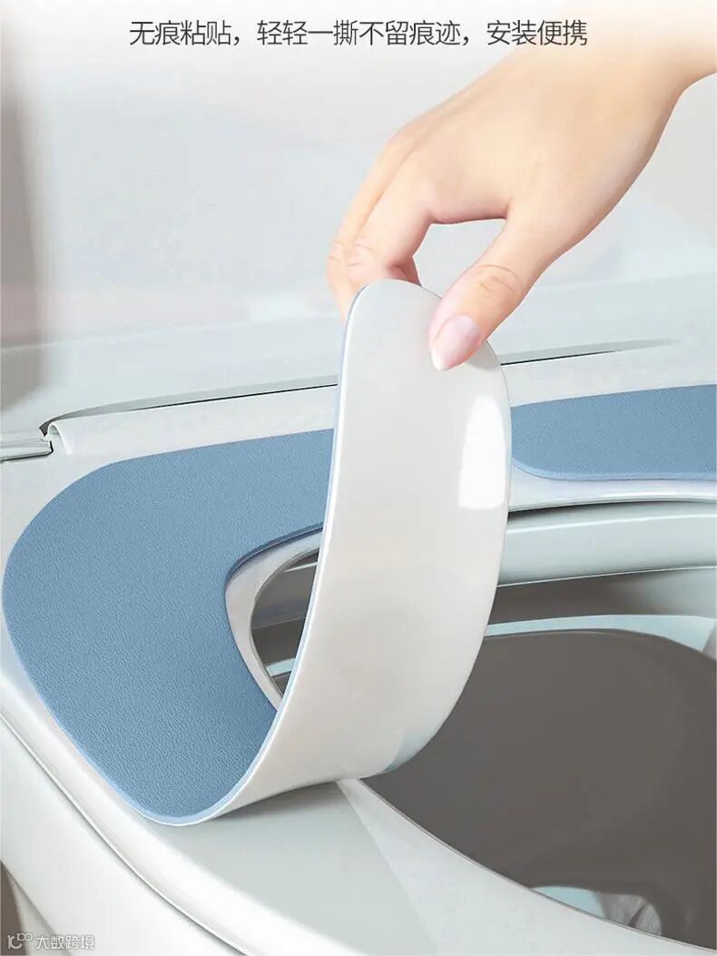 轻松一粘一抚,马桶垫就粘在圈壁上了