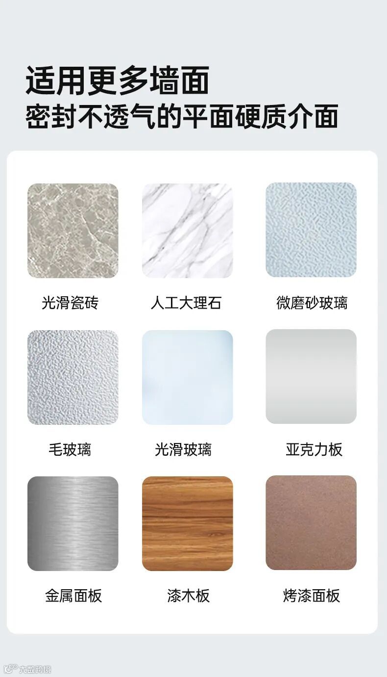 真正的超强吸附,免钉免钻无胶、完全不会破坏墙面,还能重复利用,搬家带走都没问题!