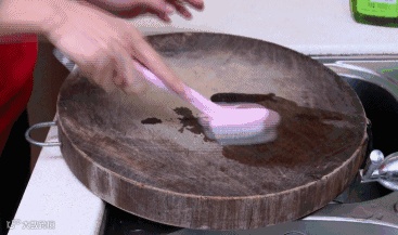 2、若砧板处理过油份过重的食物,可使用微量的洗洁精配合热水擦洗。