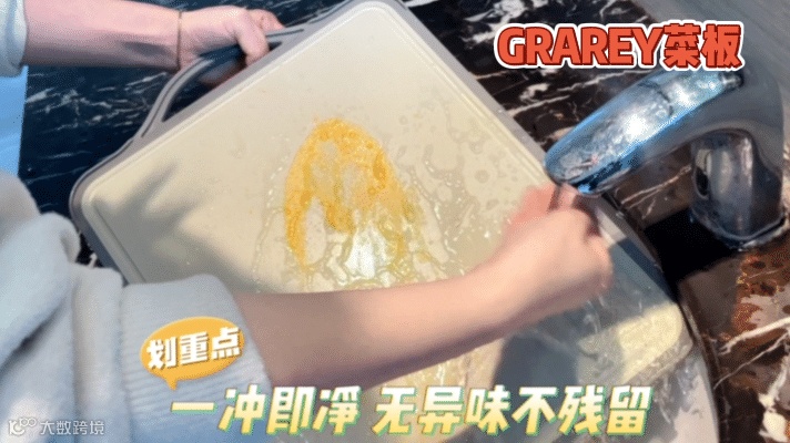 GRAREY菜板用水冲洗几下就能洁净如初,非常省时省力,简单便捷不留污垢。