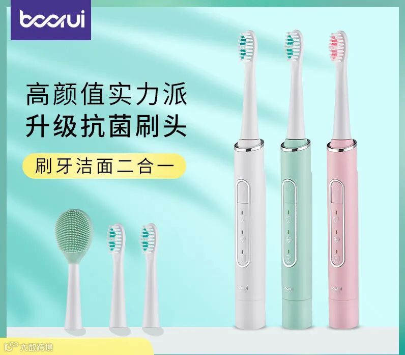 关键是,BOORUI超声波电动牙刷还非常大方。一个机身,送3个刷头(包含主机刷头)+1个洁面刷头,按3个月换一个刷头来算,用一年都妥妥滴!
