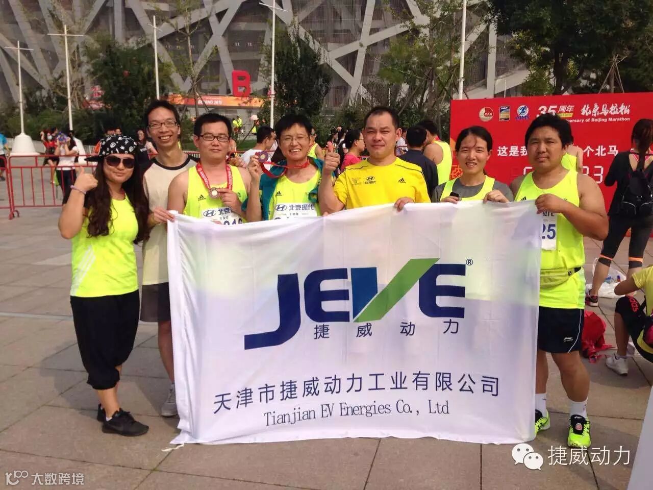 2015北京马拉松于9月20日7时30分在天安门广场鸣枪起跑。捷威动力技术副总王驰伟率6名捷威人再起征程,他们身着参赛服,展开了毅力与速度的比拼。