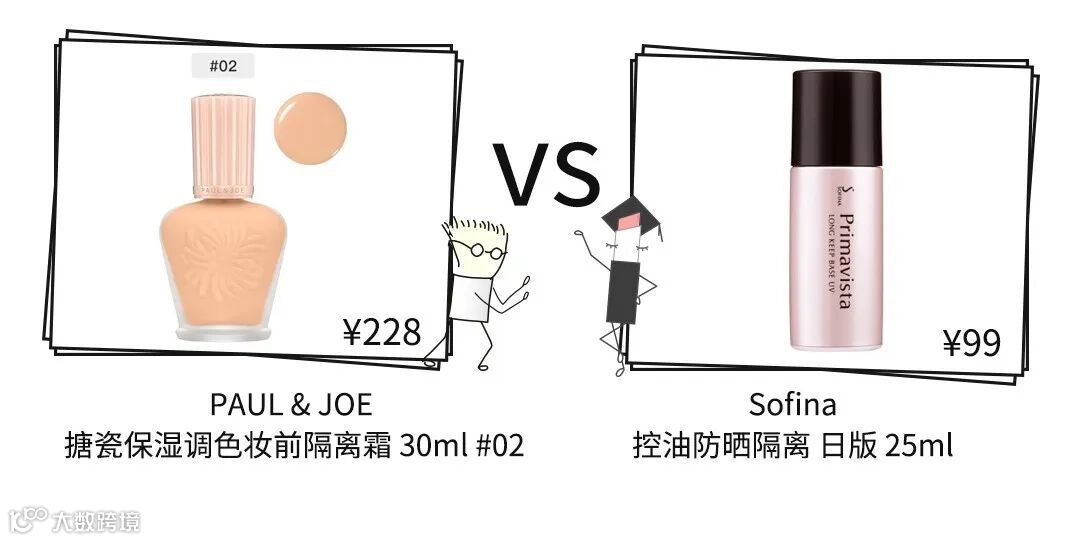 两者都是清爽型的隔离霜,但PAUL & JOE 搪瓷保湿调色妆前隔离霜更适合干皮用,而Sofina隔离霜则更适合油皮用。