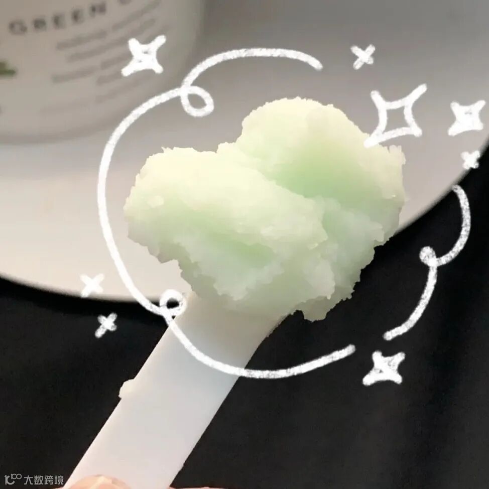 绿色膏体,但是又如冰沙一样的半透明软糯质地,面部、唇部皆可卸,挖一勺上脸就像冰淇淋,接触皮肤后即刻软化开!
