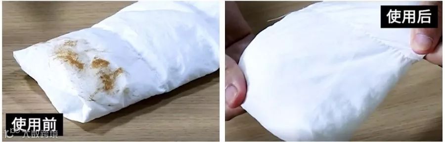 也就不到30秒的功夫,就能洁净如新。擦完以后干净不留印记,不用水洗,不用晾晒,洗完以后立马就能穿上身!