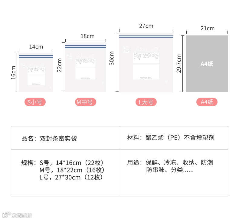 今天小编就给大家推荐一个我常用的食物保鲜神器,MAYNOS 双封条密实袋!