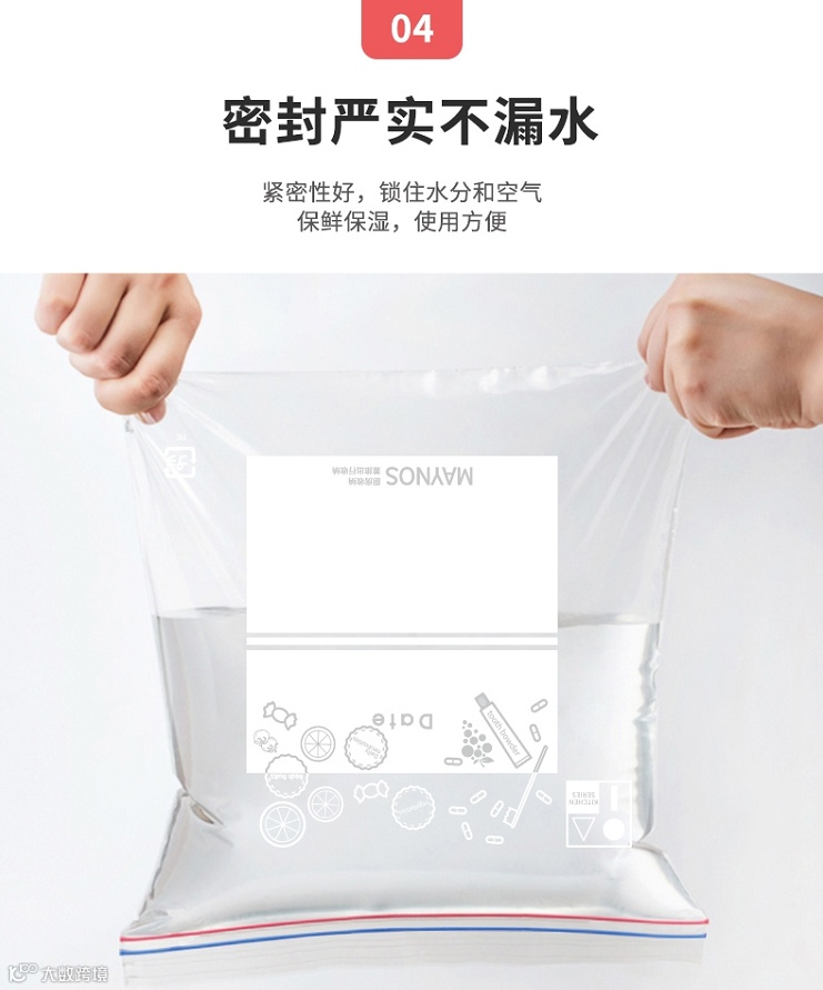 双层的密封锁经过50次以上开合实验,只要装的是非油性的物质,可清洗重复使用,性价比极高!