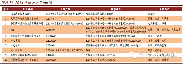 (3)行业的横向整合加快,龙头企业话语权不断增强。新能源汽车和大规模储能是未来发展趋势,中国材料巨头中将出现大市值的全球性龙头企业。例如负极材料,目前技术相对成熟,从全球企业来看,市场份额主要集中在日立化成、精工碳素、JFE日本钢铁等厂家。在国内,负极材料的领先企业主要包括贝特瑞(产能2.92 万吨)、上海杉杉(产能1.2 万吨)也进入国际巨头的行列,客户包括三星、LG、松下、索尼等国际电芯龙头。