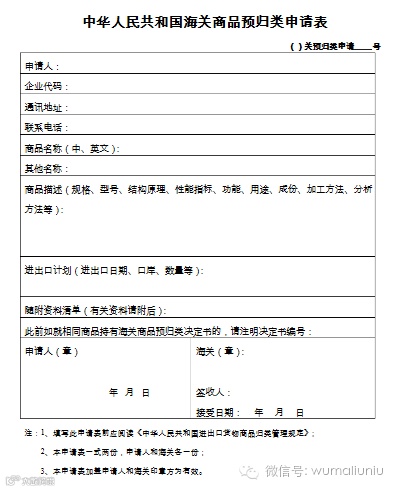 操作方法是首先,要向海关领取或在网上下载《中华人民共和国海关商品预归类申请书》(一种固定格式的表格),并进行填写以书面形式提交进口地直属海关(一般为关税归类部门)受理。《中华人民共和国海关商品预归类申请书》一式二份,申请人和作决定的海关各执一份。