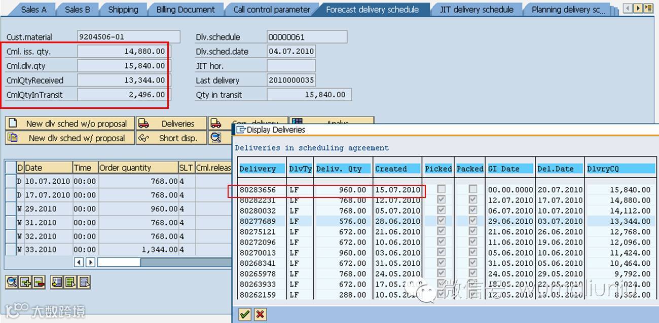 Cum. Dlv.qty=cml qty.Received+cml qty In Transit 结合以上例子,即15840=13344+2496