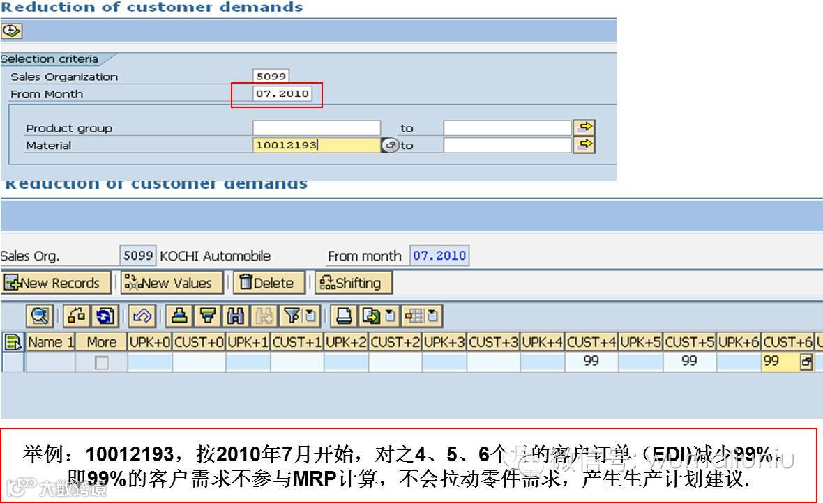 9.Reduction是经过慎重评估,认为系统的客户订单(EDI)或者UPK偏高或偏低,对需求按比例增减的一种操作方式。操作权限开放需经领导同意。Transactioncode: YRD2 ,可以按照物料号或者PF进行筛选。