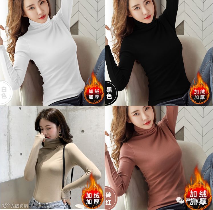 秋冬季爆款《2019秋冬新款洋气内搭常规款190g高领t恤》白色/黑色/姜黄色/酒红色4款