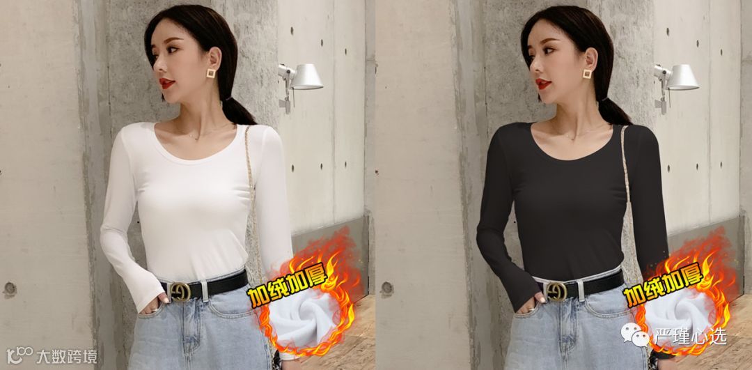 《2019秋冬新款洋气内搭加绒加厚360g圆领t恤》白色/黑色款