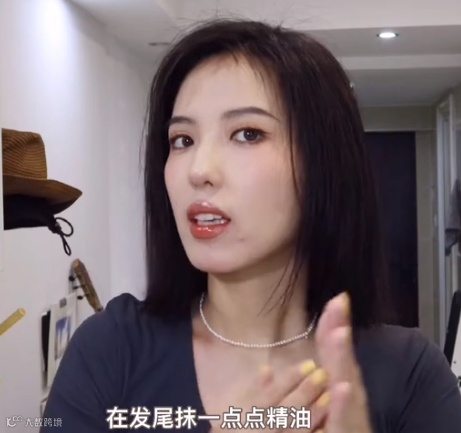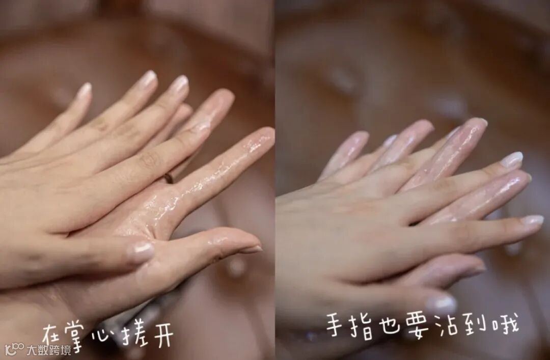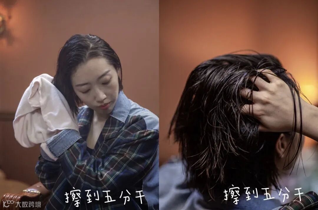 STEP2:在头发七八成干的时候,抹精油在发尾
