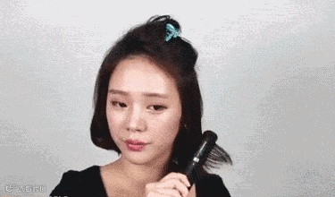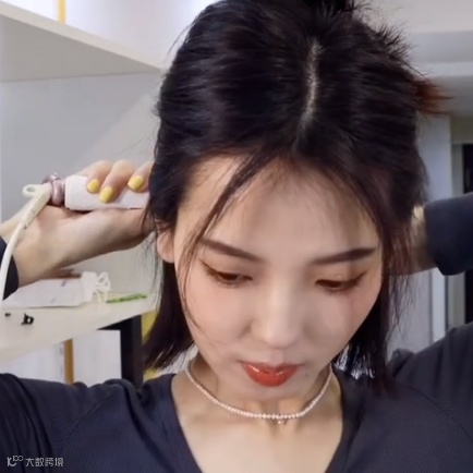 STEP4:可以用卷发梳卷一下头顶头发,增高颅顶。发尾内扣增加两侧蓬松弧度。刘海也可以卷一下哦~