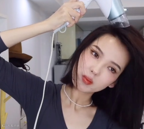 STEP1:先用吹风机将头发发根吹至蓬松状态,打造头包脸显脸小的效果。