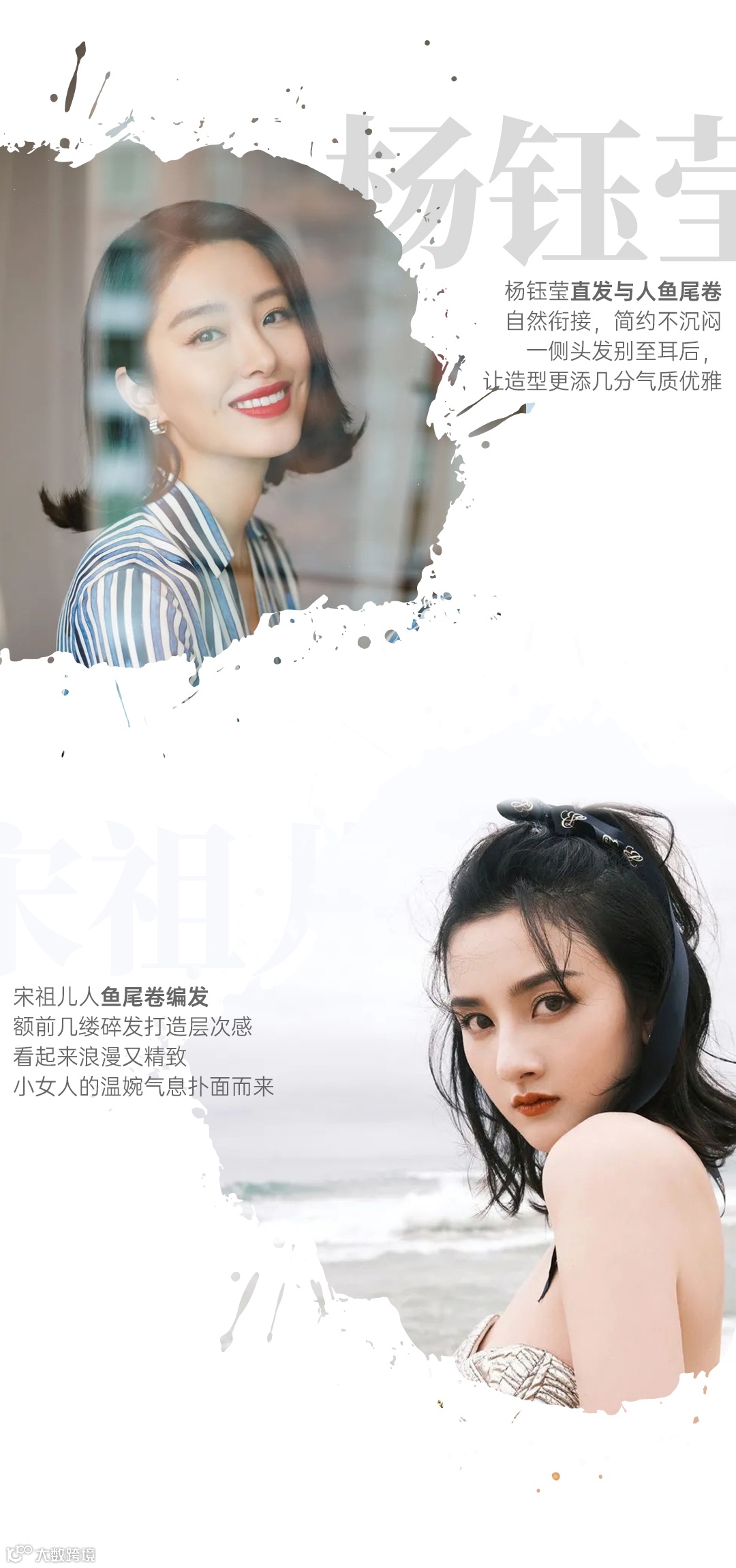 人鱼尾卷的外翻弧度将脸型横向拉长,