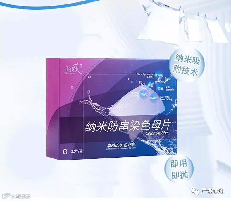 纳米防串染色母片:是一种新型的辅助洗衣工具,能够及时的吸收并锁住清洗彩色衣物时,释放在水中游离的彩色粒子,从而避免这些燃料粒子附着其他衣物上将其他衣物(同一件衣物的其他地方)染花!