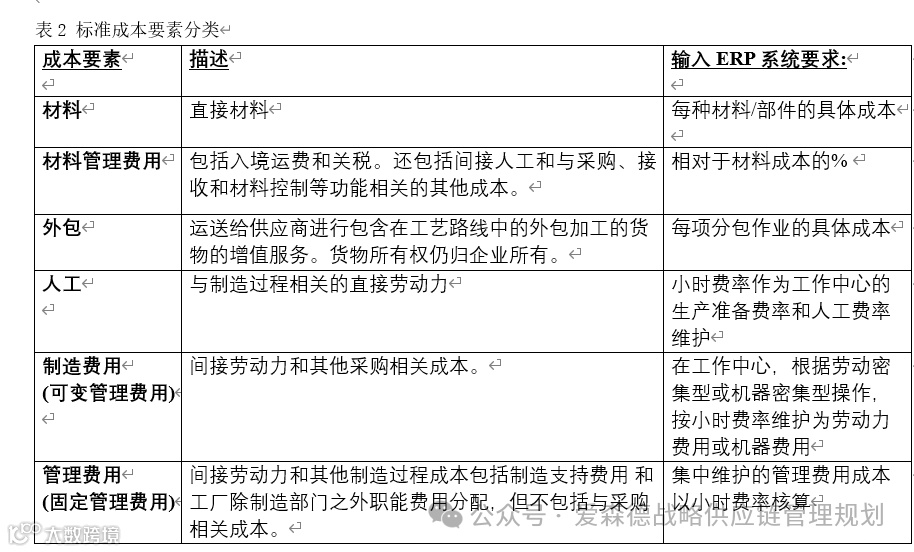 因此,企业为使其利润最大化,必须制定在特定目标市场中具竞争力的销售价格与标准成本。标准成本是企业在正常情况下生产或提供某一单位产品或服务所预期的成本。它是根据过去的经验、现有的生产技术条件和管理水平,经过综合分析确定的。制造型企业的标准成本包括以下六个要素: