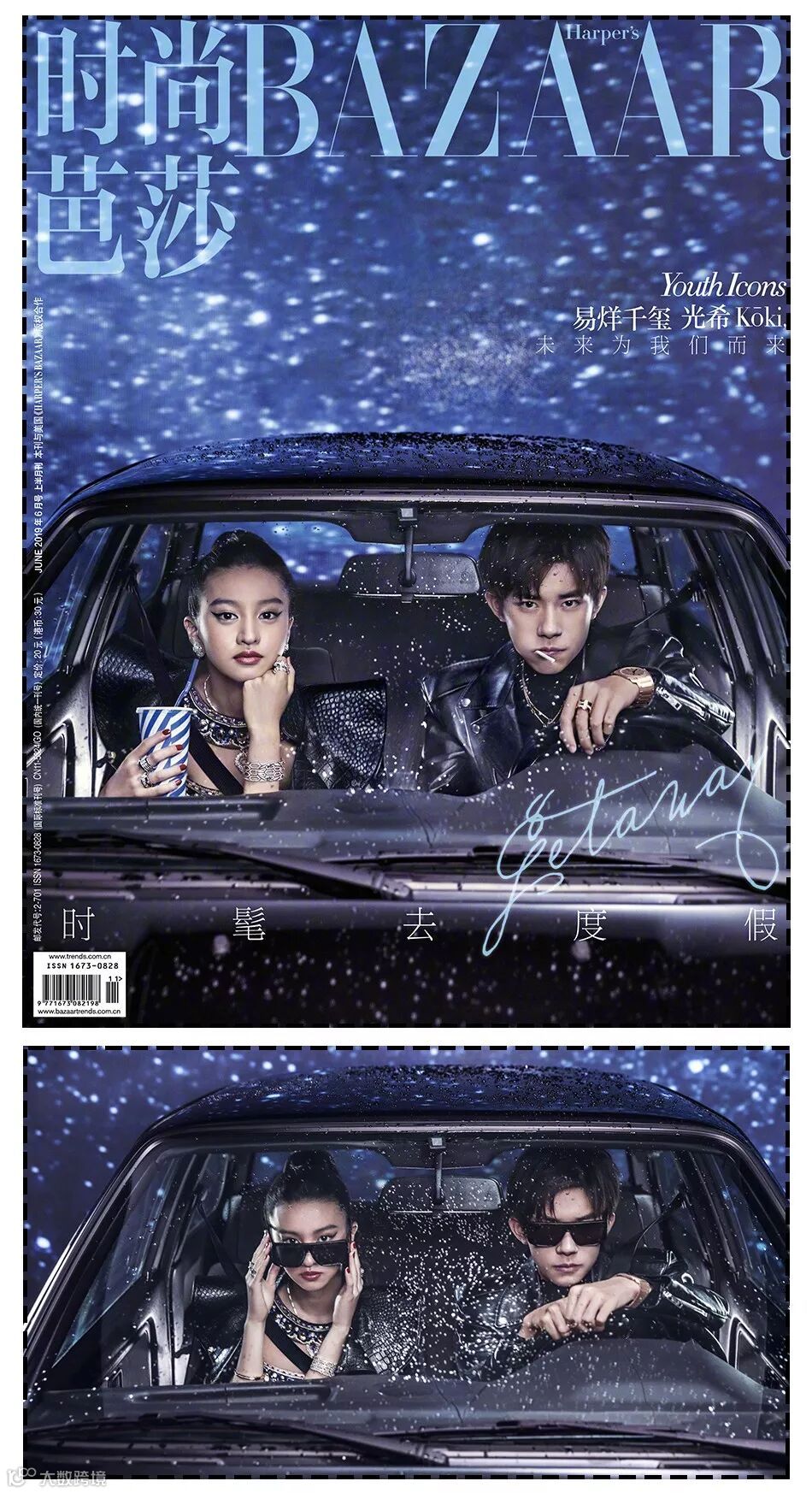 在国内最为引起关注的是分别和易烊千玺,吴亦凡的合作。和易烊千玺神仙组合的中国版《时尚芭莎》6月上封面大片,香车女郎受到一众好评,由陈漫掌镜。