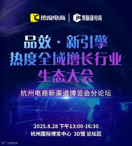 作为博览会重磅组成部分,由热度倾力打造的「热度全域增长行业生态大会」将于8月28日下午13:30-16:30 在 3D馆论坛区 隆重举行!这场聚焦全域增长核心命题的专业论坛,将成为您抢占未来电商先机的关键一站。