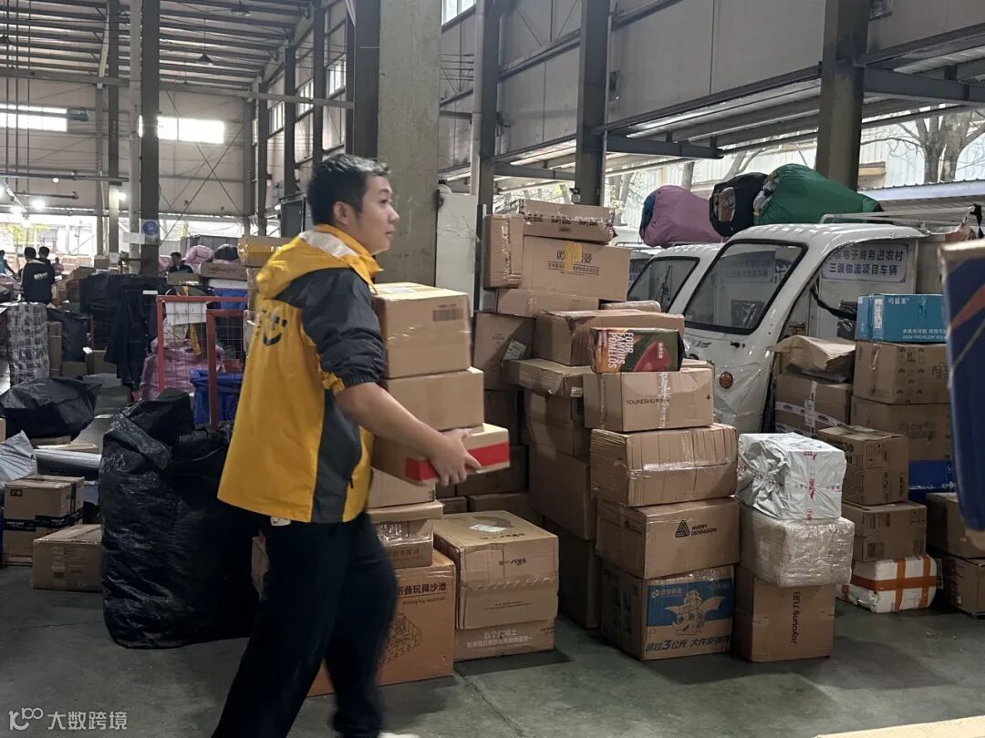 快递小哥们负责将操作部分拣好的快递送到快递驿站。