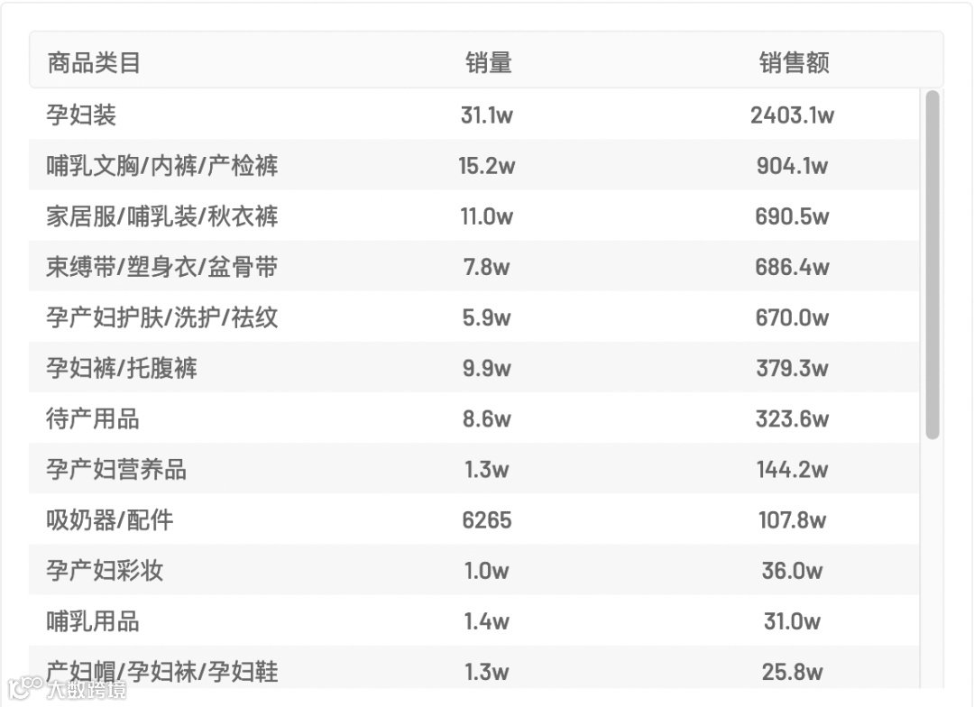 母婴品类行业数据