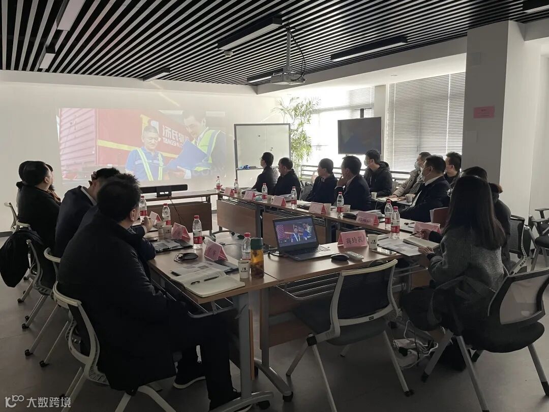 会议伊始,与政府部门共同观看企业宣传片后,由汤氏供应链董事长汤鲁飞介绍公司基本情况和已有平台建设运营情况,汇报汤氏供应链企业核心竞争力和企业管理模式存在的优势及数字化物流推广方面存在的一些问题。