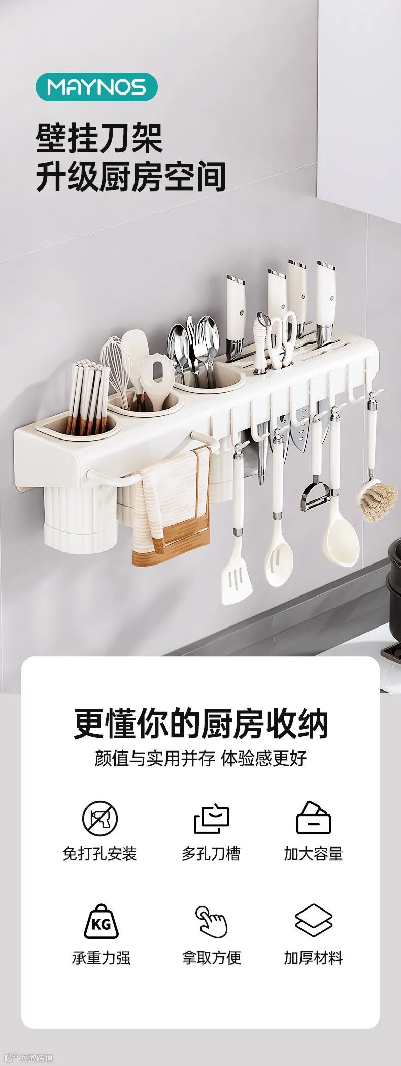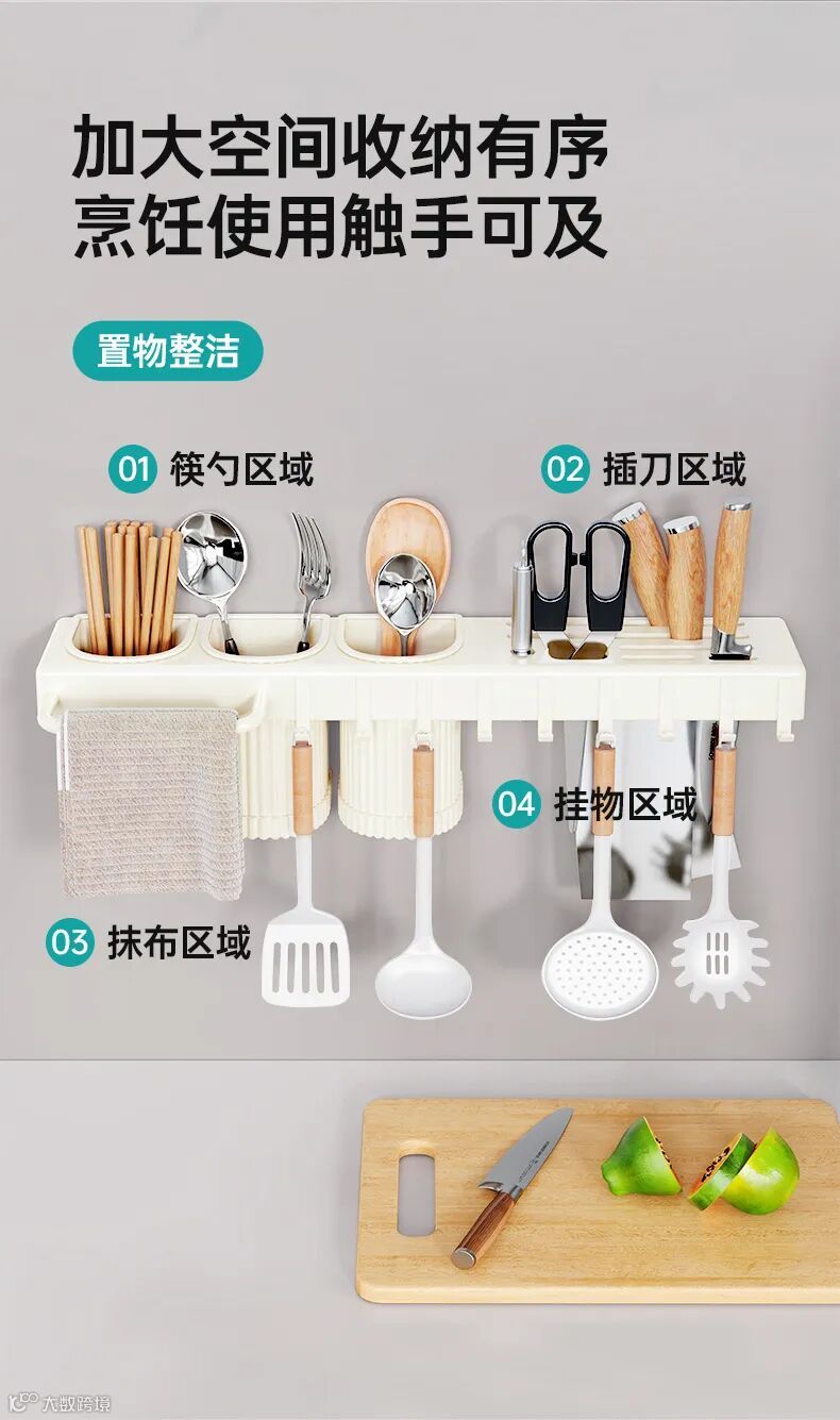 集刀具、筷子筒、挂钩、毛巾杆于一体