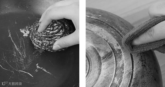 平常大家都是使用钢丝球去清洗锅具,当你清洗完后就会发现,锅底不是一道一道的划痕,就是没有清洗干净。