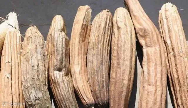 当藤老了,丝瓜也老了。薅藤的时候顺便就把老丝瓜摘下来,暴晒几天后存放好。