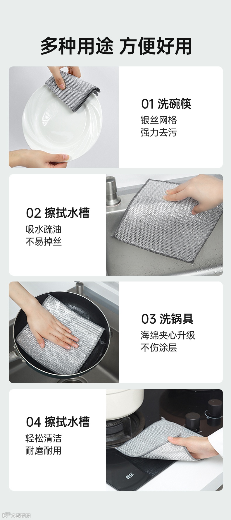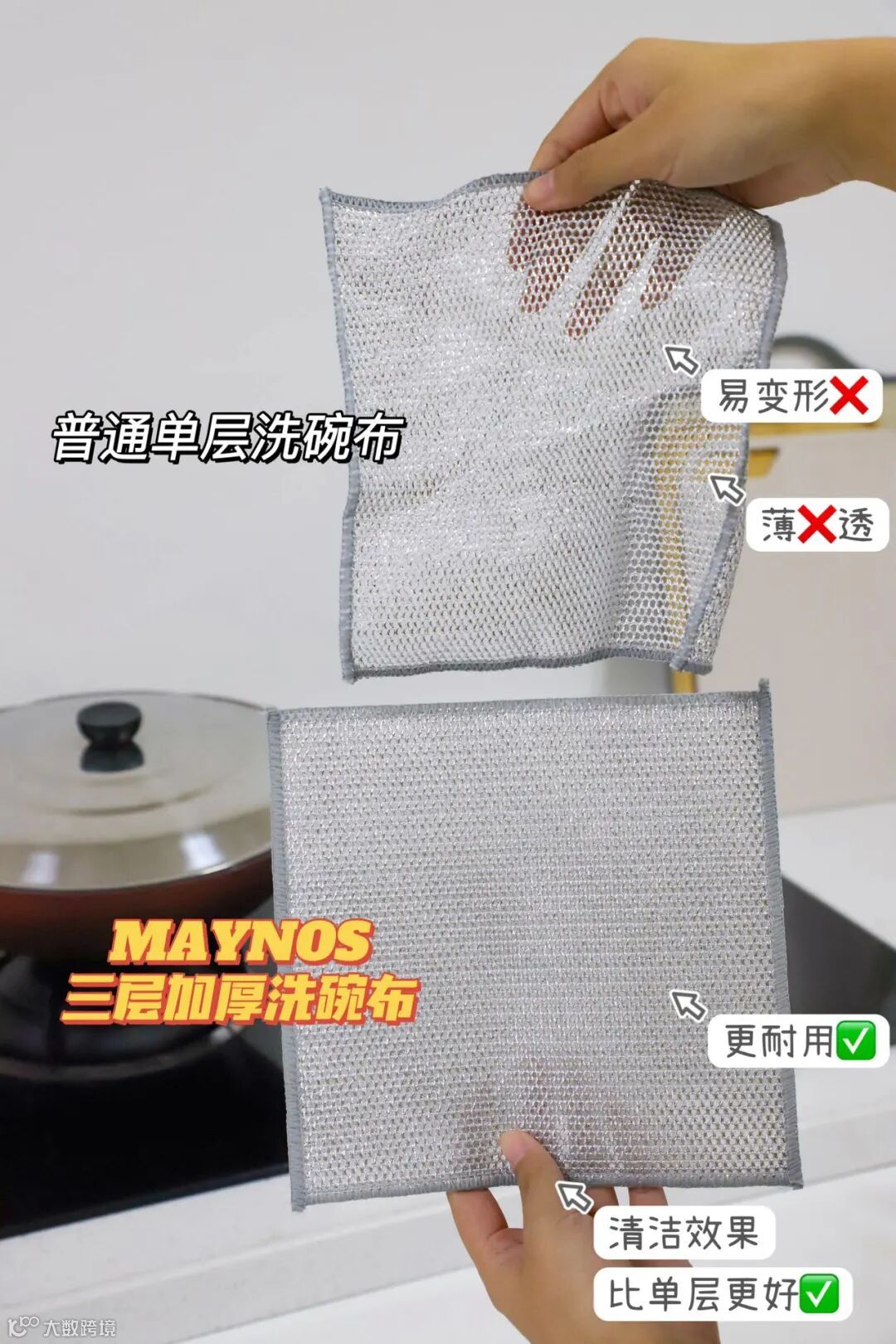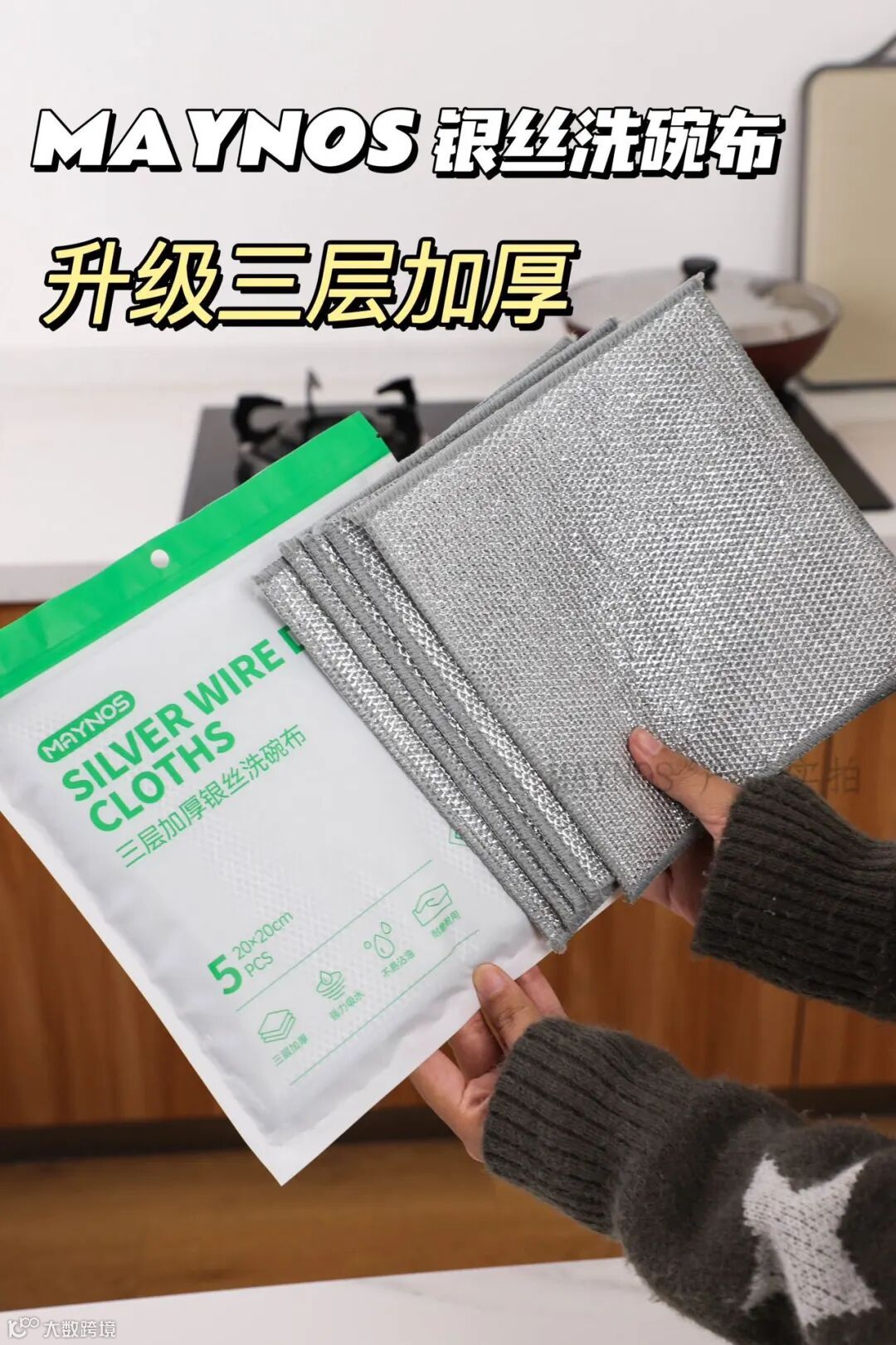 给大家推荐一种神奇抹布,MAYNOS三层加厚银丝洗碗布!去污能力更好,还干得快,不容易藏污纳垢!