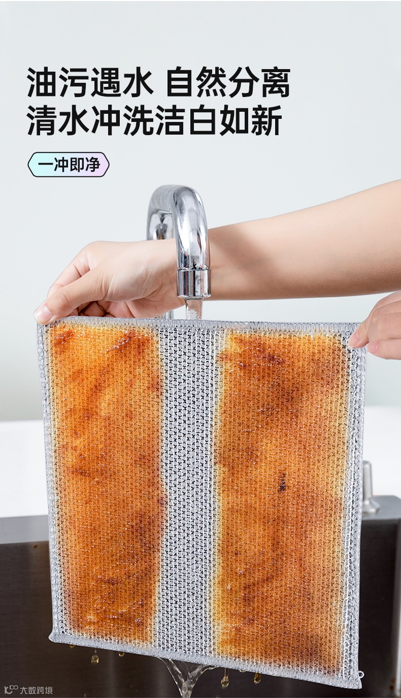 本身金属丝附带清洁属性,但是比普通抹布多了柔软的摩擦力,所谓是”柔软摩擦,深度清洁”的效果