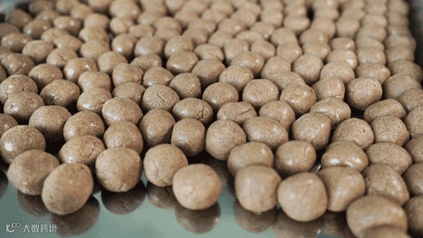 经过精选原料 、三遍清洗 、两次检验、柴火蒸3次、太阳晒3天、低温烘焙、精细研磨、配料添加,24小时不停搅拌 、手工搓丸、再次检验 、低温烘烤、凉置冷却、分装内托、整体灭菌、包装密封。