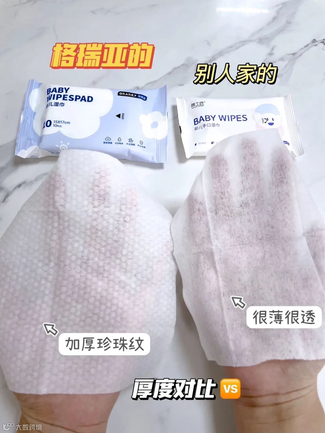 市面上的湿巾一般是40g,格瑞亚这款湿巾克重直达55g!!!可以说是婴儿湿巾界的MVP了